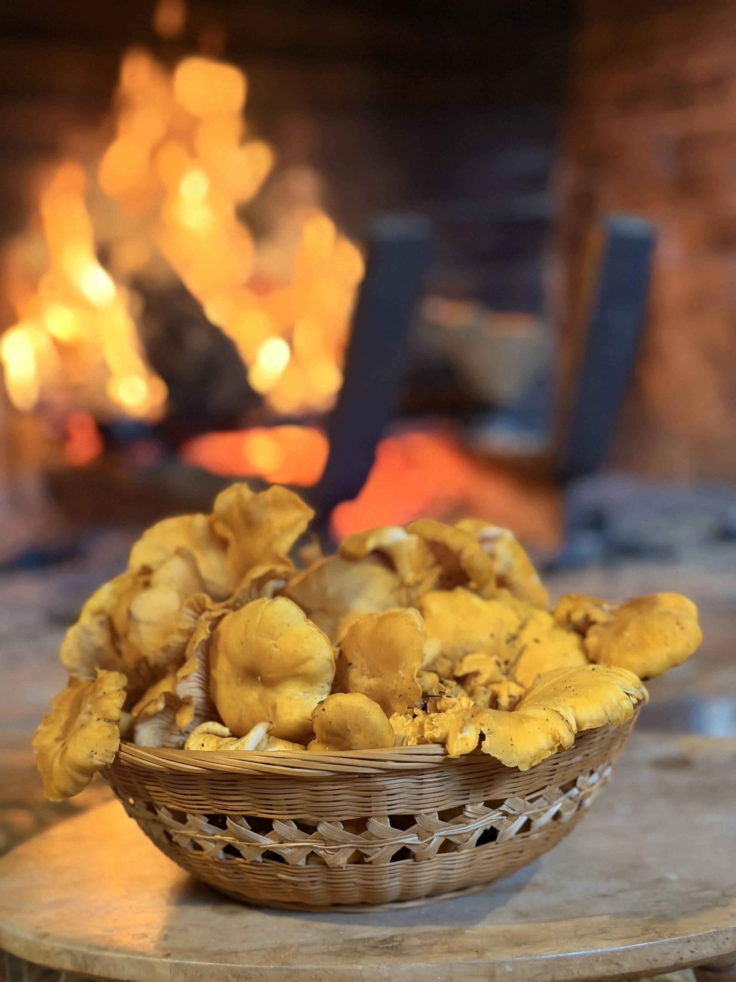 Wild mushrooms — chanterelles, hedgehogs, matsutake